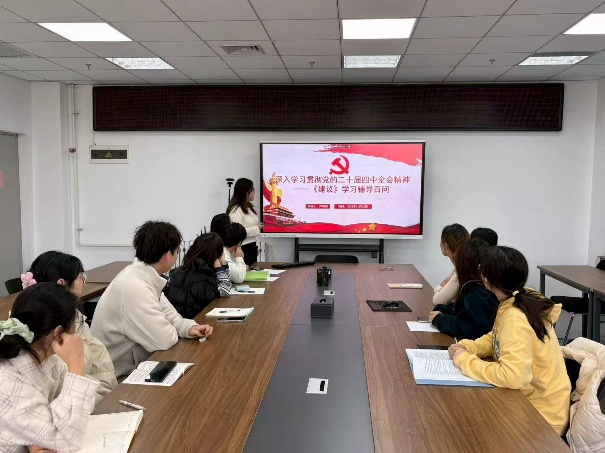 12月22日上午,wedvictor伟德工商第一学生党支部召开党的二十届四中全会精神专题研讨会,会议由党支部书记邵欣主持,全体支部党员参会。
